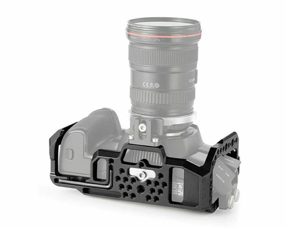 На верхней и левой сторонах этой клетки для камер находятся встроенные направляющие (планки) NАТО, к которым можно прикрепить ручку-держатель SmallRig NATO Top Handle и боковые ручки Small Rig Wooden НАТО Side Handle.