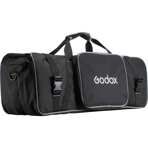 Зберігайте, транспортуйте та захищайте фото та особисте спорядження за допомогою чорної сумки для перенесення CB-05 від Godox, яка входить у комплект постачання. Збоку сумки є кишеня для аксесуарів на блискавці. Сумка має застібку-блискавку, подвійні з’єднувальні верхні ремені ручки, регульований плечовий ремінь, подвійні компресійні ремені.