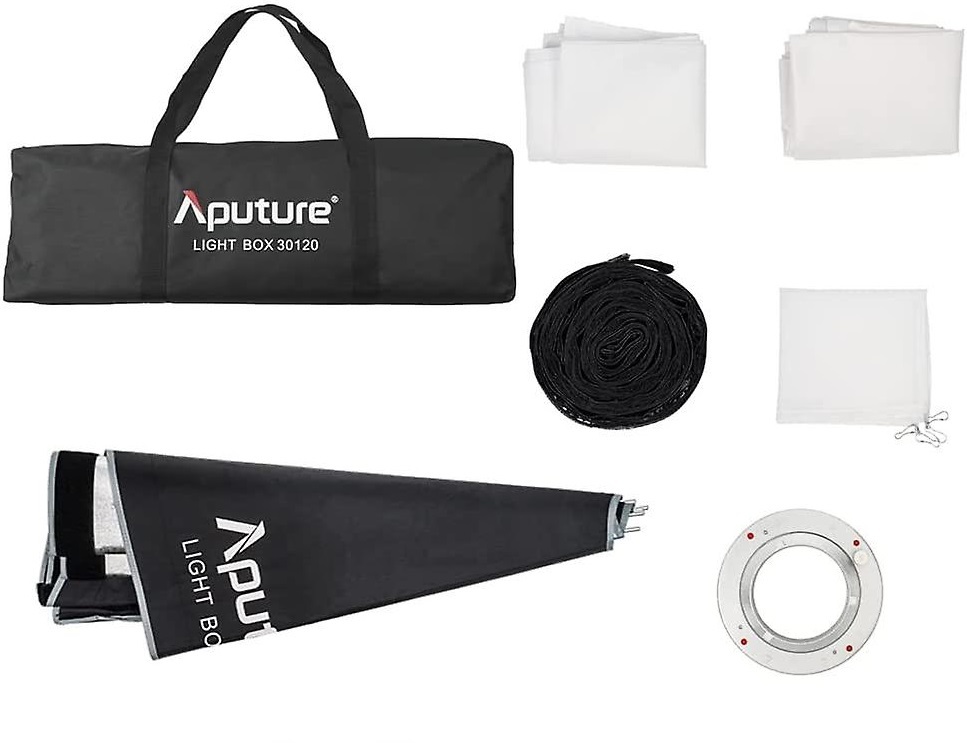 Aputure Light Box 30120 — це вузький прямокутний софтбокс із кріпленням Bowens з переднім отвором 30x120 см. Його площа поверхні та тонкий форм-фактор роблять його ідеальним для перетворення жорстких точкових світлодіодних ліхтарів Bowens Mount у чіткі, лінійні краєві ліхтарі та ключові ліхтарі для портретної та товарної фотографії, включаючи такі ліхтарі, як Aputure LS 120d, LS 300 та LS 600 серії, а також Амаран серії COB 60/100/200.