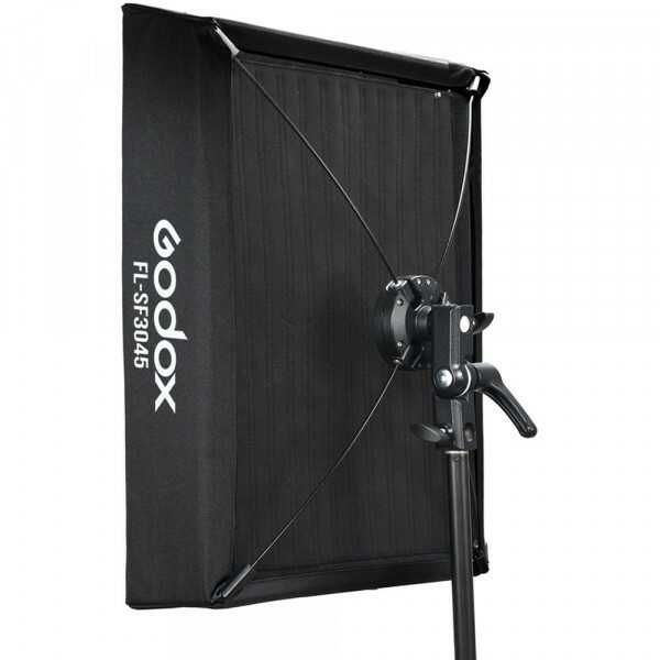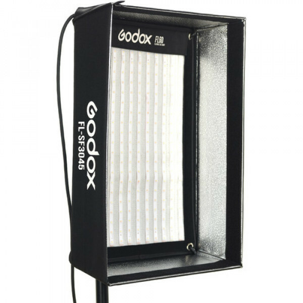 Цей софтбокс з сіткою для гнучкої світлодіодної панелі від Godox підходить до прямокутної світлодіодної панелі FL60 Flexible LED шляхом кріплення безпосередньо до вхідного в комплект X-mount тримача панелі. Маючи сріблясту внутрішню поверхню, даний софтбокс збирається за лічені хвилини, і може використовуватися як зі знімним переднім дифузором, так і без нього. Вхідна в комплект тканинна решітка створює більш спрямований вихід і допомагає зменшити потенційну блікову можливість об'єктива.
