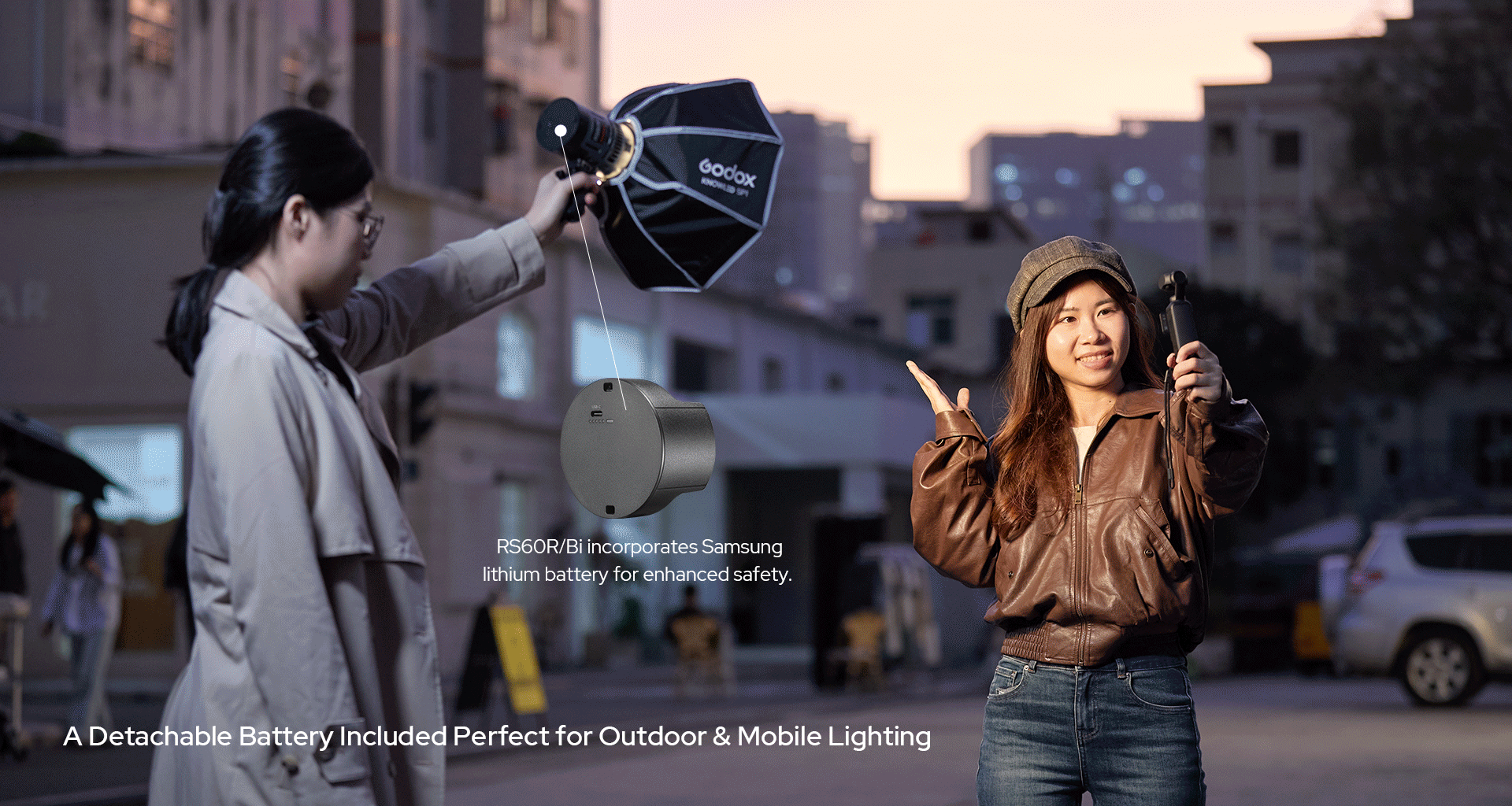 Серія RS60 пропонує універсальні варіанти живлення, включаючи швидкозарядний знімний акумулятор для використання на вулиці та в мобільних пристроях. Вона також оснащена найновішими напівпровідниками GaN третього покоління в універсальному знімному адаптері живлення, що забезпечує вищу ефективність перетворення енергії в більш компактному дизайні — більше жодних проблем з окремими адаптерами. Просто підключіть кабель живлення у формі 8 або скористайтеся адаптером E27 для безперебійного живлення, легко інтегруючи RS60R/Bi в будь-яку сцену як точкові світильники, прожектори або сценічні світильники.