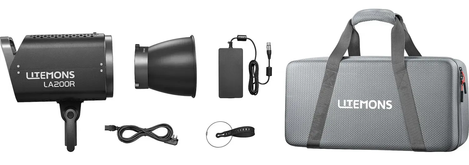 Маючи максимальний контроль кольору, світлодіодний моноблок Litemons LA200R RGB від Godox має безліч кольорів і режимів освітлення, а також надає вам функціональність NFC для швидкого керування через програму. Навіть у своєму компактному білому корпусі LA200R являє собою пристрій потужністю 220 Вт, здатний забезпечувати яскравий вихід при оснащенні відбивачем, що входить в комплект. На задній панелі пристрою знаходиться зручний екран для моніторингу параметрів світла, доповнений локальними кнопками та ручкою для легкого налаштування. Серія Litemons LA від Godox пропонує компактне світлове рішення для всіх типів відеозйомки та створення контенту.