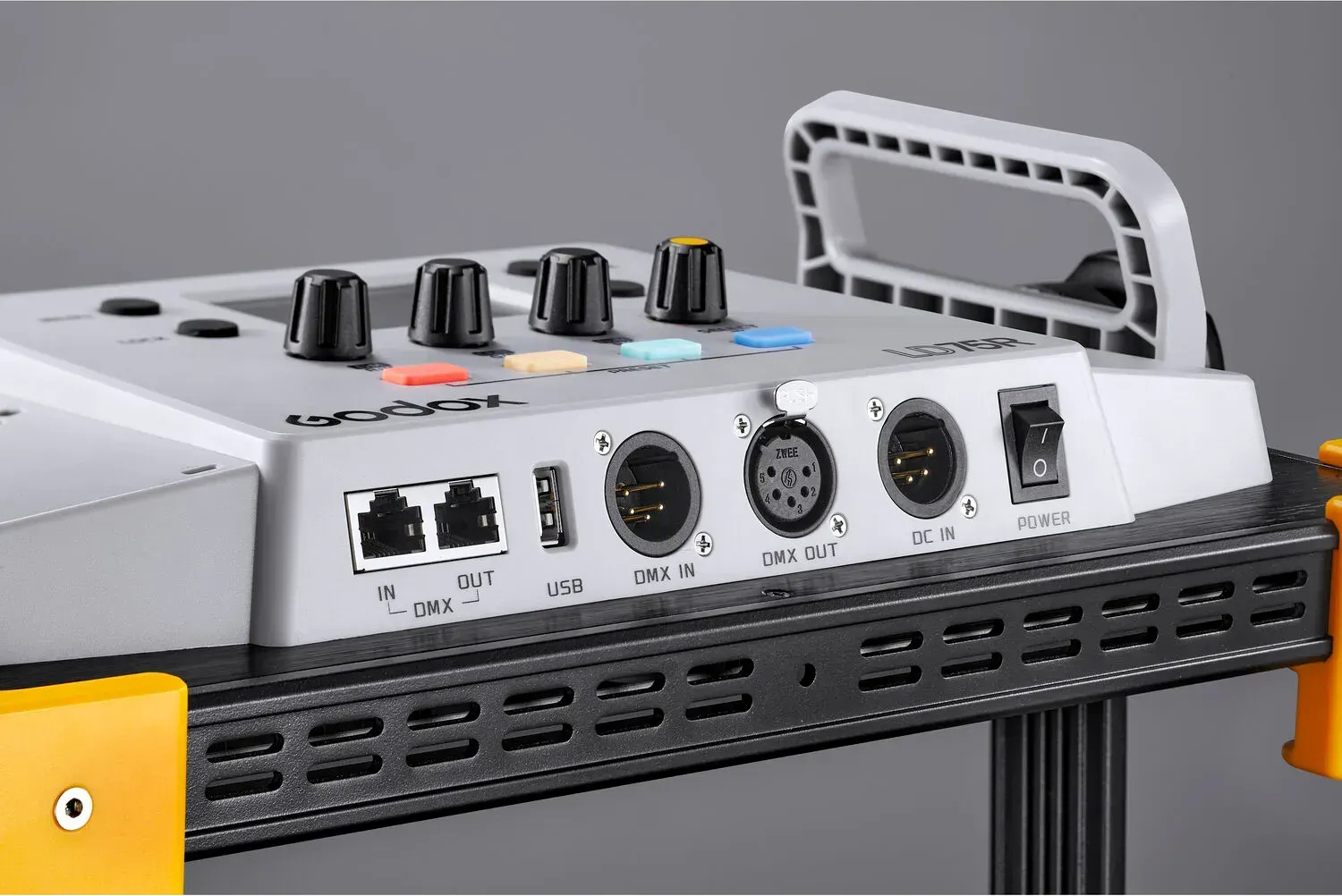 Підтримується дистанційне керування за допомогою бездротового пульта (придбається окремо), керування за допомогою мобільного додатка та DMX-керування, що дозволяє використовувати ці освітлювачі у професійних проектах для телетрансляцій чи кіновиробництва.