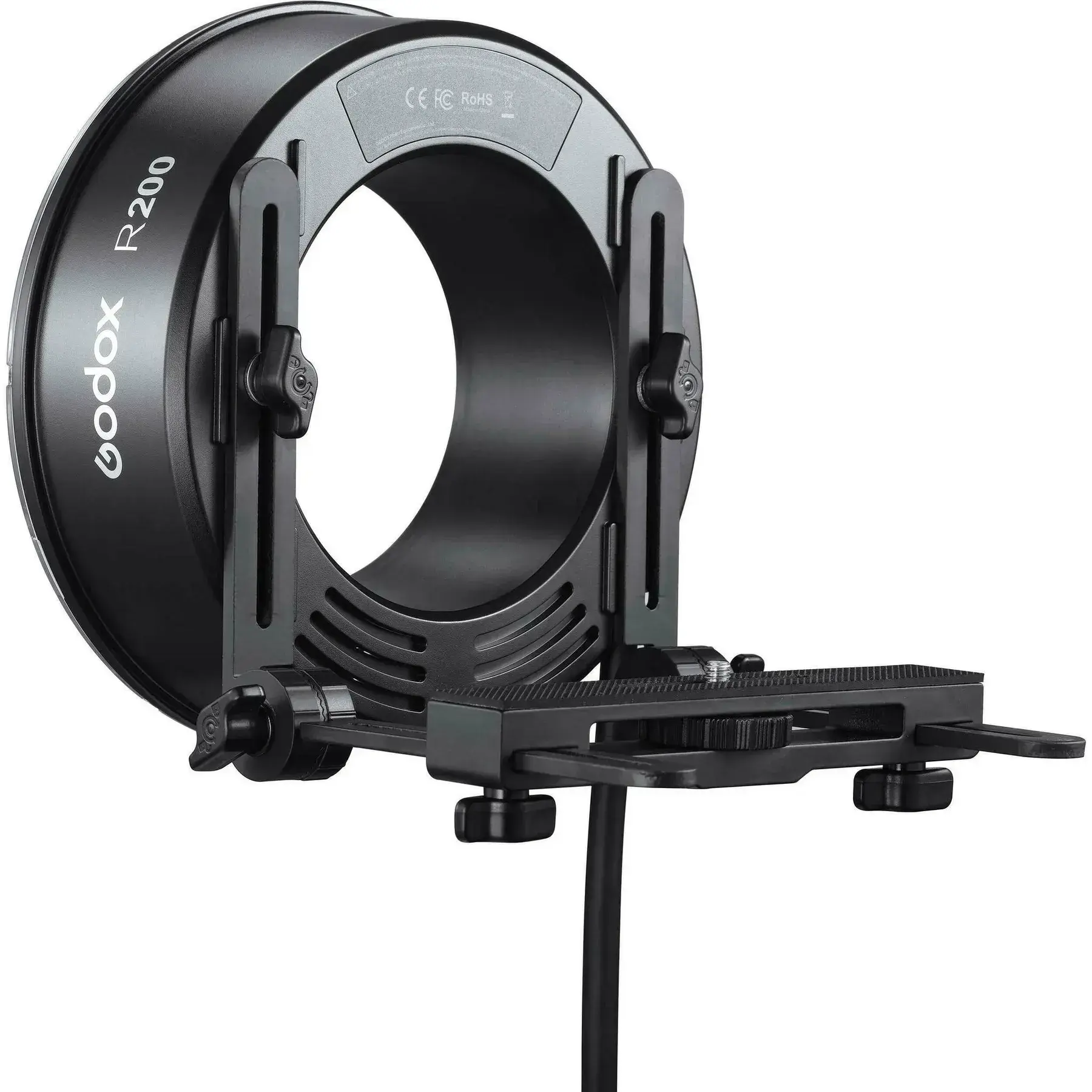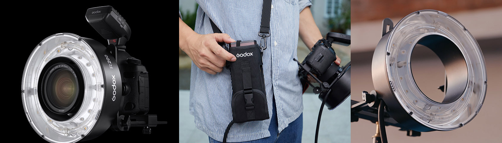 Імпульсна виносна голова Godox R200 створює рівномірне яскраве освітлення з невеликою кількістю тіней від об'єкту зйомки. Голова приєднується до генераторного блоку спалаху Godox AD200Pro та AD200. Пристрій має власну імпульсну лампу потужністю до 200 Дж та світлодіодну лампу-кільце пілотного світла 10 Вт.