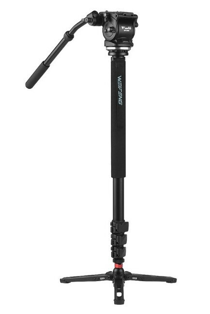 Монопод WEIFENG WF-500S 188 см - чудовий вибір для камери з великим об'єктивом. Він комбінується з гідравлічною демпфуючою поворотною головкою, трубкою з алюмінієвого сплаву діаметром 32 мм і міні-складний штатив.