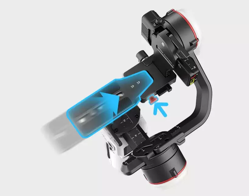 Винахідливі замки і засувки для зберігання. Гімбал можна налаштувати на режим половинного зберігання/повного зберігання. Під час перемикання в режим половинного зберігання зі встановленою камерою не потрібне регулювання плеча осі, а в разі розширення не потрібне повторне балансування.