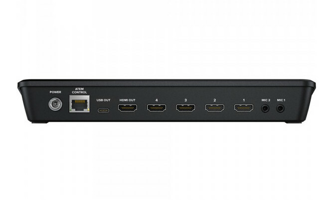 - Та ж задня панель, що й у ATEM Mini з додатовими кнопками і програмними функціями