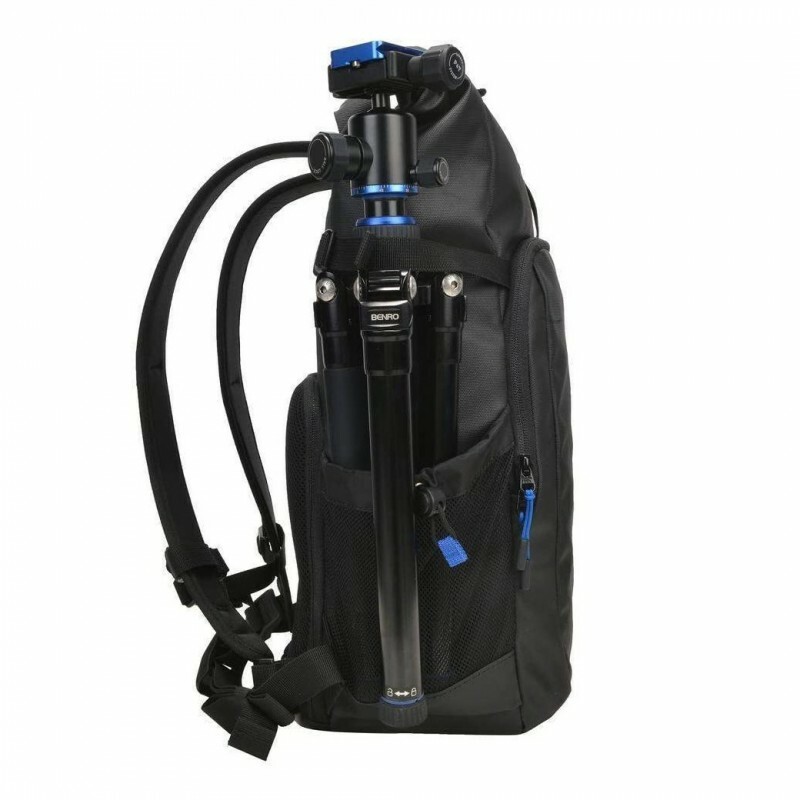 На бічних гранях рюкзака передбачена система кріплення у вигляді ременів із фастексом, які у поєднанні з еластичними кишенями дозволяють надійно зафіксувати для транспортування стандартний штатив або монопод.