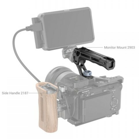 Різьбові отвори 1/4"-20 служать для монтажу шарнірного кронштейна SmallRig Magic Arm 2070, на які можна також додати відеомонітор і навіть бездротовий пульт дистанційного керування SmallRig 2924.