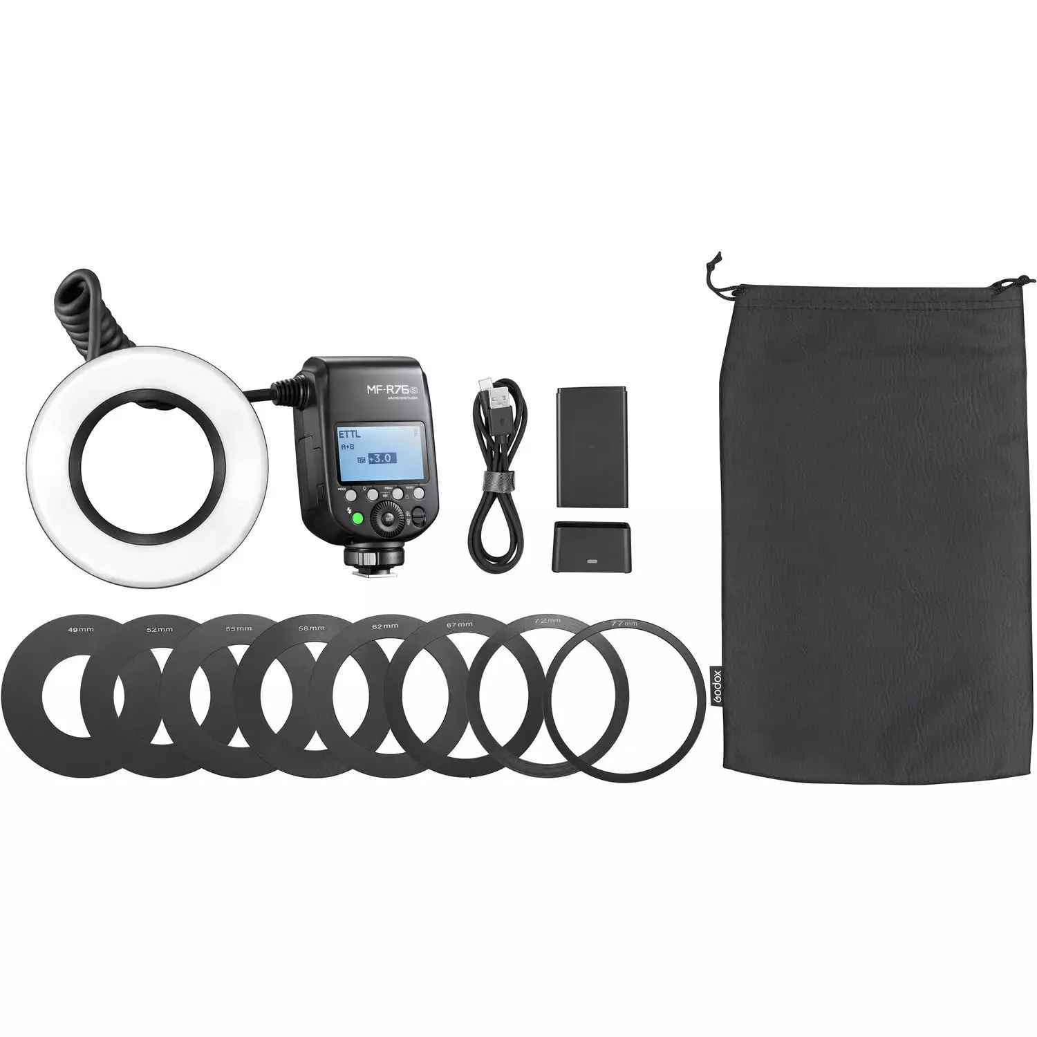 Godox MF-R76 TTL – це зручний інтерфейс керування, автоматичний режим TTL та високошвидкісна синхронізація допоможуть вам у макрозйомці. Відкрийте коробку, зарядіть акумулятор і починайте зйомку – просто.