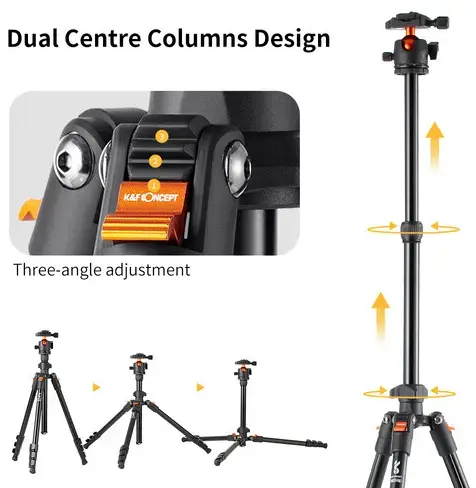 Штатив K&F Concept BI234M має реверсивну центральну колону, тому за потреби ви можете наблизитися до землі ще більше. Ця функція спеціально розроблена для макрозйомки.