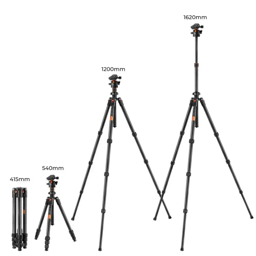 Велика сумісність Цей штатив для камери зі стандартним різьбленням 1/4 дюйма, який можна використовувати з більшістю швидкознімних майданчиків Arca-Swiss; гвинт 1/4 дюйма підходить для більшості камер, цифрових дзеркальних фотокамер, проекторів, телескопів і т.д.
