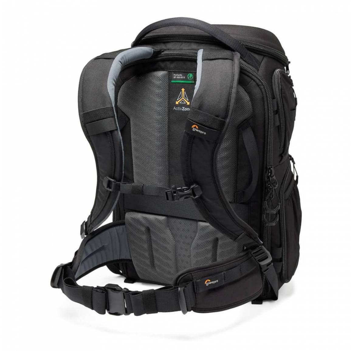Фоторюкзак ProTactic BP 450 AW III розроблений для комфорту з двошаровим ременем ActivZone™, нагрудним ременем SlideCam і м'яким з'ємним поясним ременем. Формована задня панель з EVA з перфорацією та хвилястим малюнком покращує циркуляцію повітря, а додаткова поясна конструкція забезпечує підтримку, особливо при перенесенні ноутбука. Задня панель включає дві ручки для захоплення, які разом з верхньою і нижньою ручками забезпечують легкий доступ до багажного відділення під час подорожі.