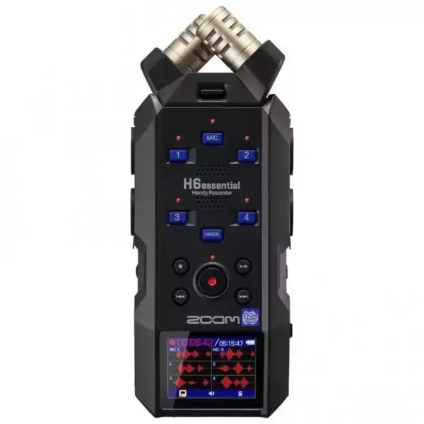 Zoom H6 Essential - портативний цифровий аудіорекордер, який відрізняється високою якістю звуку, гнучкістю та зручністю використання. Цей диктофон призначений для професіоналів у галузі аудіозапису, журналістики, музикантів та інших творчих фахівців, які потребують надійного інструменту для фіксації високоякісного звуку за різних умов.