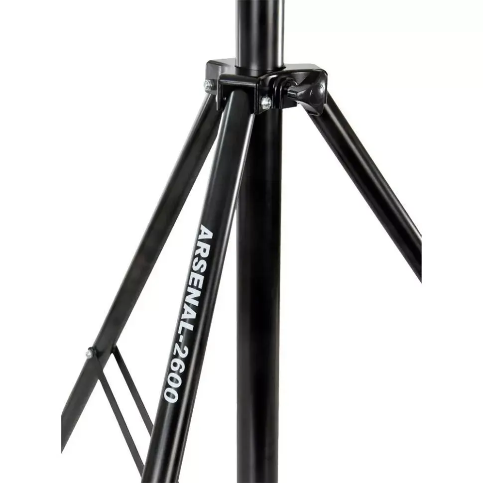 Оновлена версія легендарної студійної стійки Arsenal ARS-2600 поєднує перевірену часом надійність із покращеним механізмом фіксації. Ця професійна стійка витримує навантаження до 4 кг і забезпечує стабільне положення освітлення на висоті від 100 до 260 см завдяки широкій опорній основі.