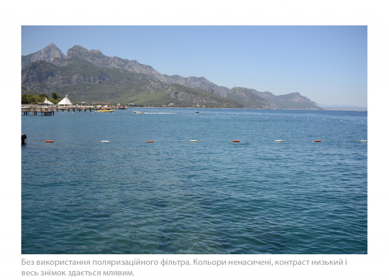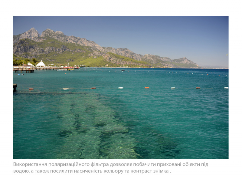 Завдяки ефекту поляризації покращує чистоту власних кольорів та підвищує їх насиченість. Підсилює контрастність зображення. Широко застосовується у пейзажній фотографії, вода на знімках стає прозорою, трава зеленішою, а фарби золотої осені яскравіші та бiльш насичені.
