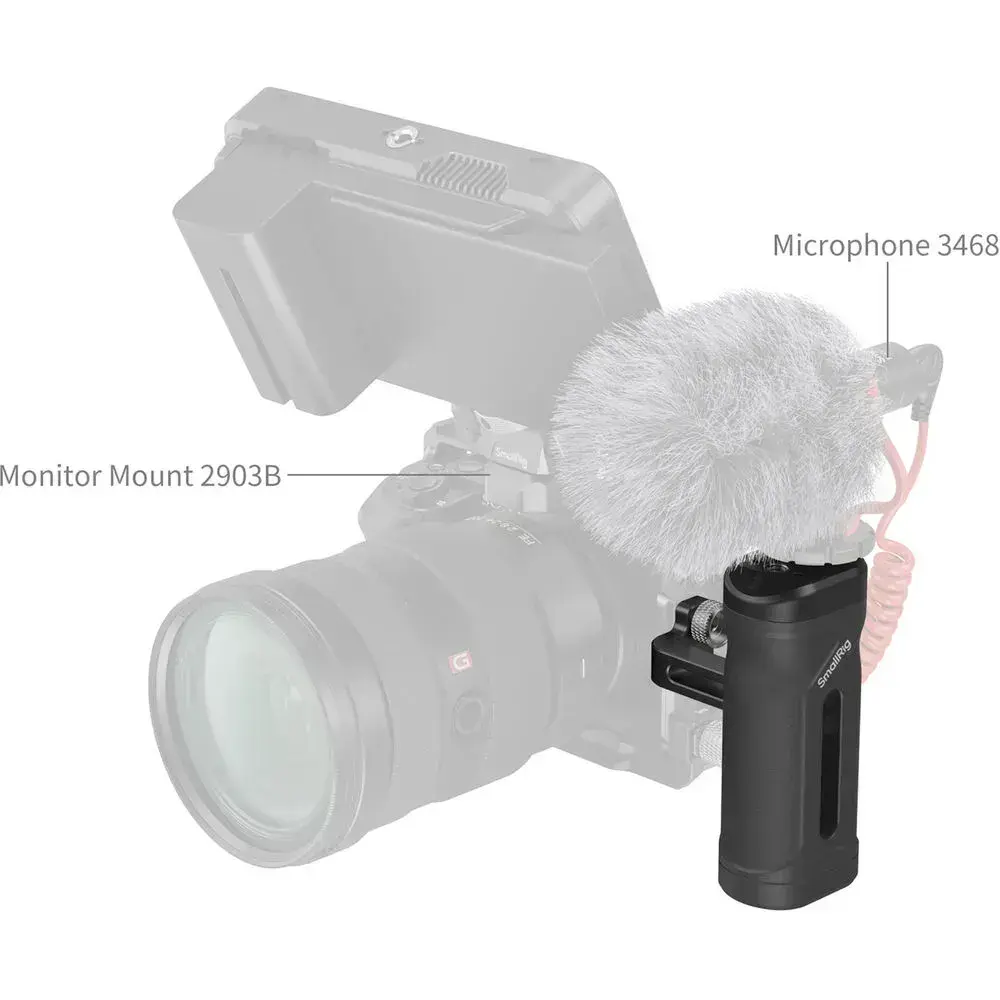 За допомогою різьбових отворів 1/4"-20 і отворів позиціонування на ручку можна встановити такі аксесуари як регульоване кріплення для монітора SmallRig 2905 і Magic Arm з двома кульовими головками SmallRig 3875.